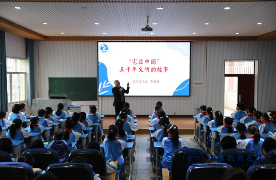 党总支书记张克家以“宅兹中国”为题,带来一堂生动深刻的爱国思政课,带领孩子们探寻中华文明根脉。(通讯员:罗璨、张小玲)
